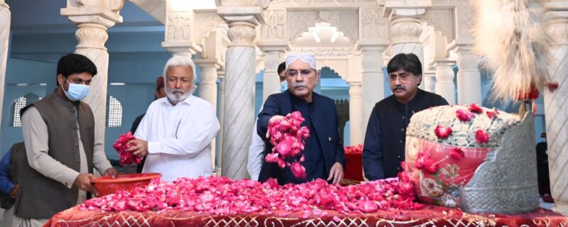 لاڑکانہ: صدر آصف زرداری نے قائد عوام شہید ذوالفقار علی بھٹو کے مزار پر پھول چڑھائے