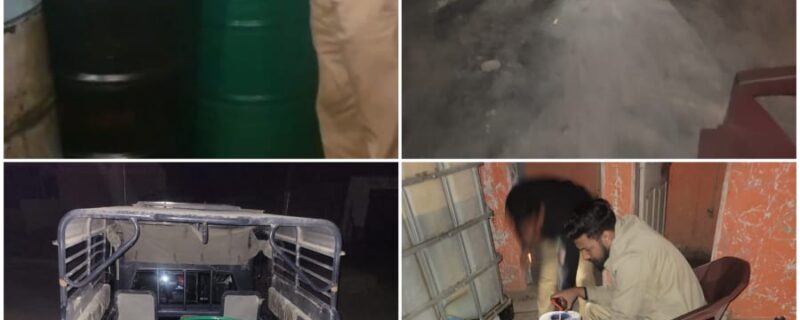 غیر قانونی ڈیزل ڈیپو سے 244 لیٹر اسمگل شدہ ڈیزل، مختلف اقسام کے ڈرم، گیلن، پمپ اور پائیپ وغیرہ برآمد کرلئے گئے۔