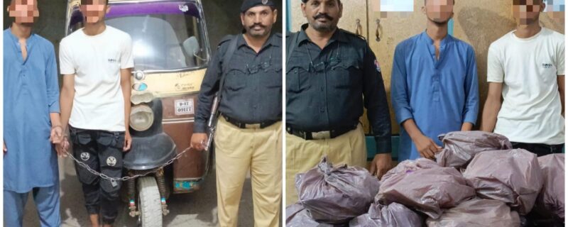 رکشہ میں سوار ثاقب اور عثمان نامی ملزمان کو گرفتار کرلیا گیا۔