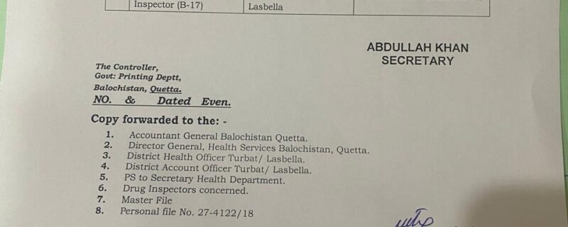 حب(بیورو رپورٹ امیدعلی گچکی) سابقہ ڈراگ انسپکٹر آصف نامی شخص کی وجہ سے لسبیلہ میں جعلی میڈیسن ابتک اپنے عروج پر ھے سکٹریری ھیلتھ صالع محمد بلوچ چند پیسوں کے عوض حب کے عوام کی جان کو خطرے میں ڈالنے کی کوشش کررہے ہیں سنے میں آیا ہے کہ سیکرٹری ھیلتھ آشی باد سے دوبارا حب میں تعینات ھورھا ھے۔ حب کے عوامی حلقوں کا کہنا ہے کہ ہم سابقہ ڈرگ انسپکٹر آصف اور سکٹریری ھیلتھ کے خلاف احتجاج کرینگے آصف ڈرگ انسپکٹر کی وجہ سے اور جعلی میڈیسنون کی وجہ سے بہت سارے اموات ھوچکے ہیں۔ ھم اہلیان حب وزیراعلی بلوچستان چیف سکٹریری بلو چستان وزیراعظم پاکستان سے اس ڈرگ انسپکٹر کے خلاف قانونی کاروائی عمل میں لائی جائے اپیل کرتے ھین ایک مہینے سے زیادہ ھے اور تربت میں اسکا تبادلہ ھوچگا ھے اپنا حاضری رپورٹ نہیں دے رہے ہیں۔ تربت ہی سے اسکا تعلق ھے یہ ایک سوالیہ نشان ھے اپنے گھر میں تعینات ھونے کے باوجود آخر کیوں نہیں جارہے ہیں۔ پوچھے تو کون پوچھے