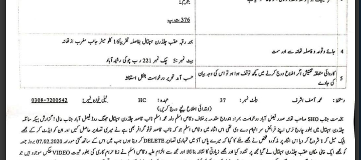 آباد چلڈرن ہسپتال ناٸب قاصد نے نرس کو ہسپتال کے قریب ہی مکان میں لیجاکر اپنی ہوس کا نشانہ بناڈالا