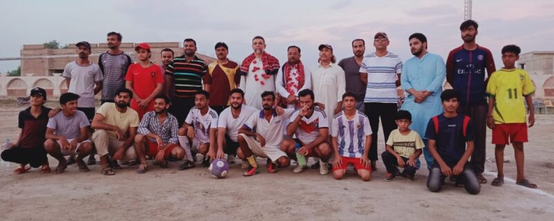 روہڑی:مہمان گرامی کا فائنل میچ کی فاتح ٹیم کے ہمراہ گروپ فوٹو دوسری جانب کامیاب فٹبال ٹیم ونر ٹرافی وصول کرتے ہوئے